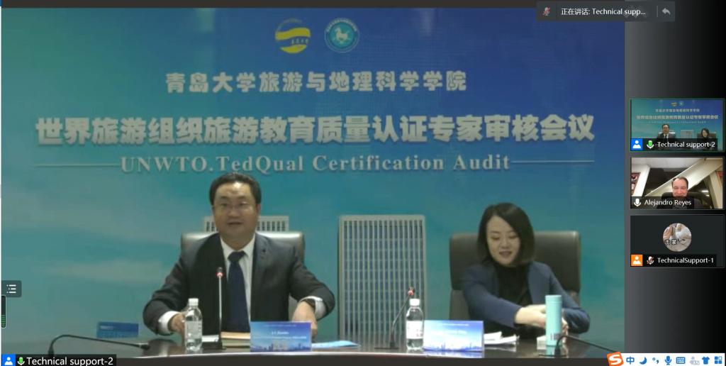 认证审核专家Dr.Reyes总结了6天与认证工作小组的报告与支撑材料论证,云游览校史馆、学生事务大厅、“非遗在青大”文化空间、青大印象休闲茶餐厅、旅游目的地管理实验室等办学设施,线上访谈学校职能部门、教师、学生、校友、公共部门和私营部门代表等审核情况。他认为,结合自评报告、支撑材料论证以及访谈情况,我校旅游管理专业和酒店管理专业的认证准备工作扎实、办学目标明确、办学特色鲜明、办学条件与设施优越、社会声誉和认可度较高,同时也指出了两个专业的不足,并提出了改进的建议。他表示,根据认证流程,接下来将尽快撰写形成一份审核报告提交联合国世界旅游组织旅游教育质量认证委员会审议,最终的认证结果大约在四至六个月后由认证委员会作出。
