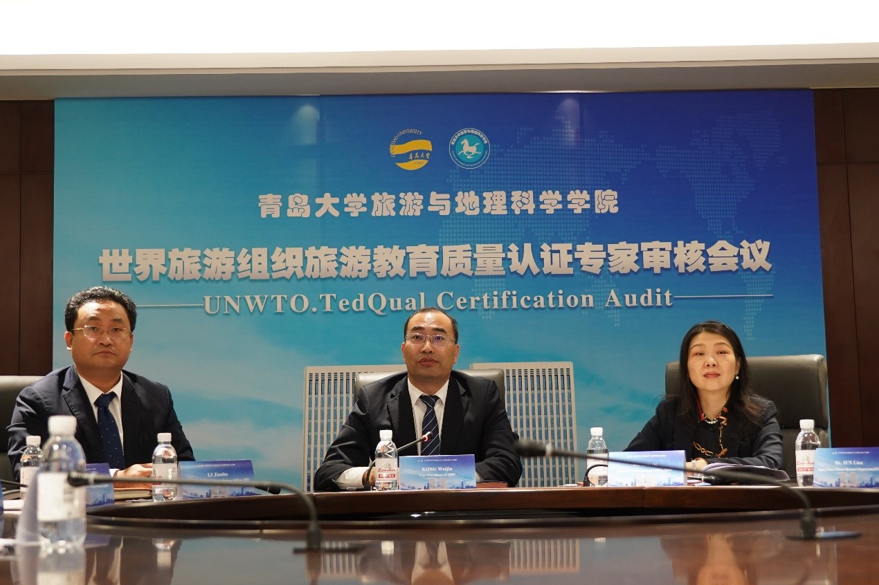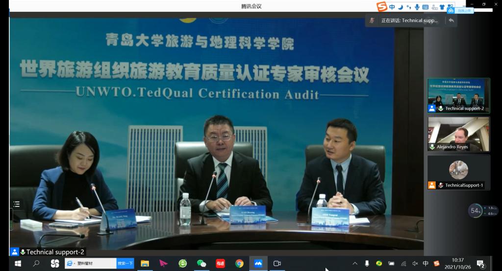 2021年11月5日上午,我院旅游管理专业和酒店管理专业联合国世界旅游组织教育质量认证审核工作反馈会在会议中心301召开。校党委常委、副校长孔伟金出席会议并致辞,学校教务处、财务处、学生处、人力资源处、国际交流合作处、资产与实验室管理处负责人、SJB世俱杯官方网站负责人、认证工作小组成员、教师代表等参加反馈会。联合国世界旅游组织旅游教育质量认证专家Dr.Reyes在墨西哥通过视频线上参加反馈会。