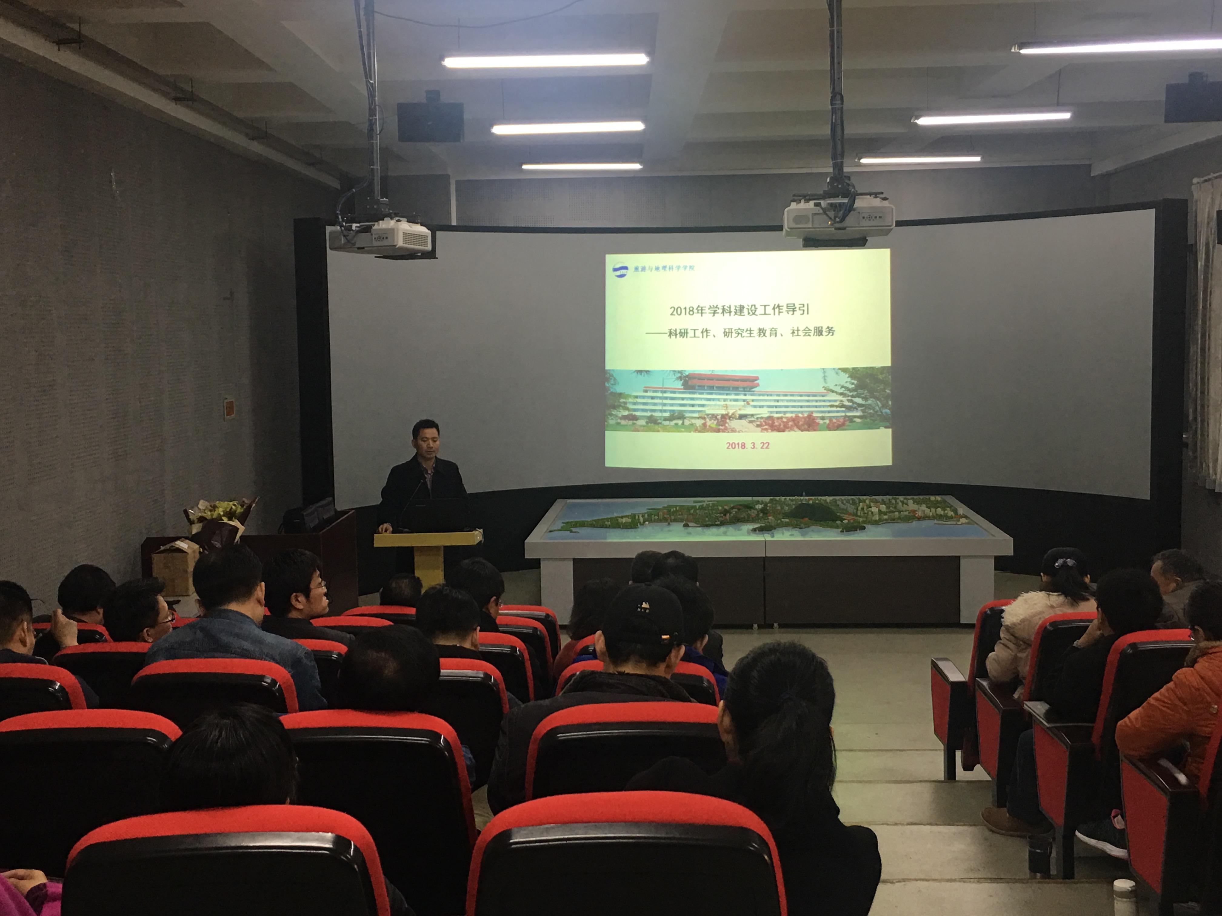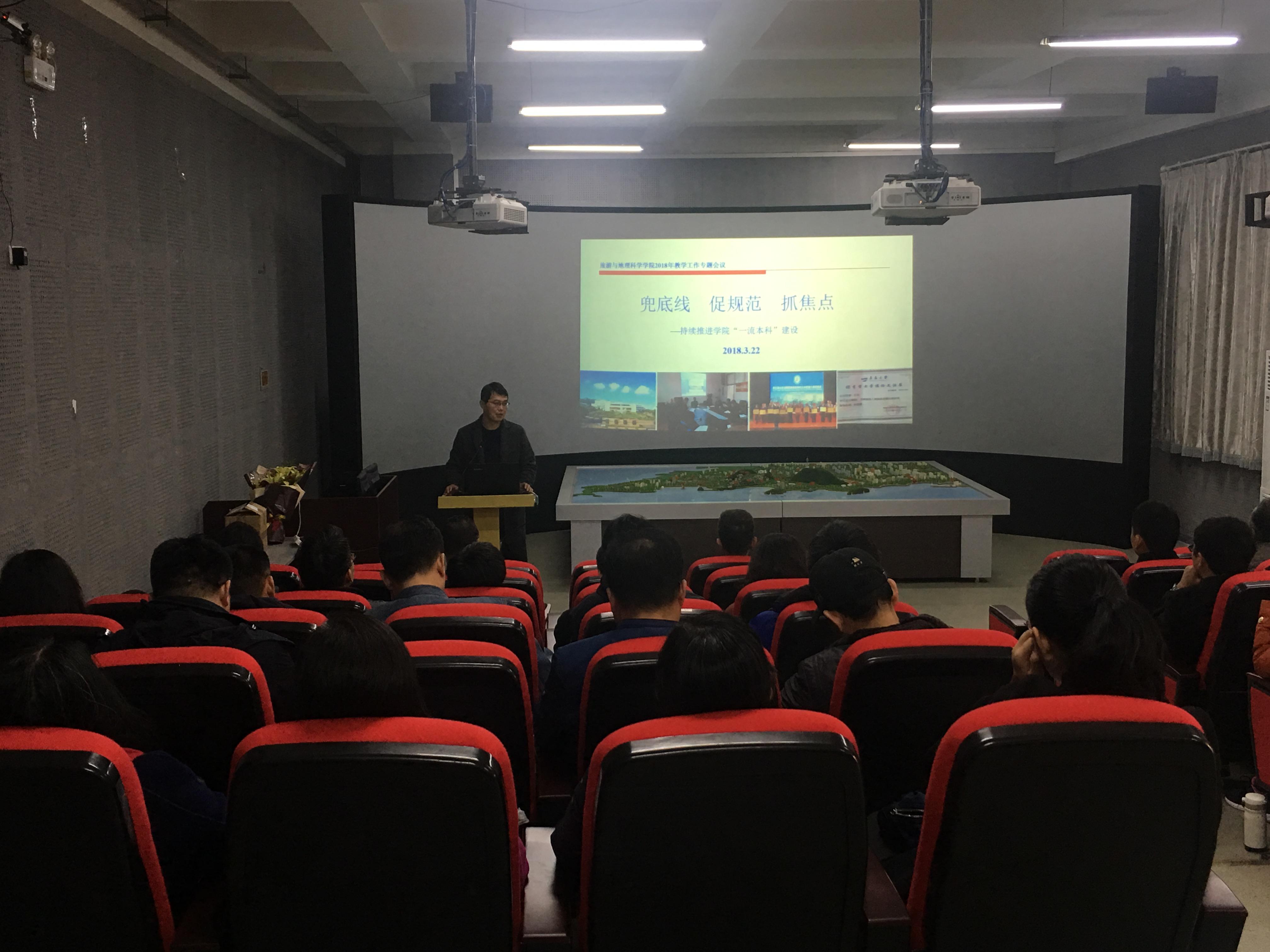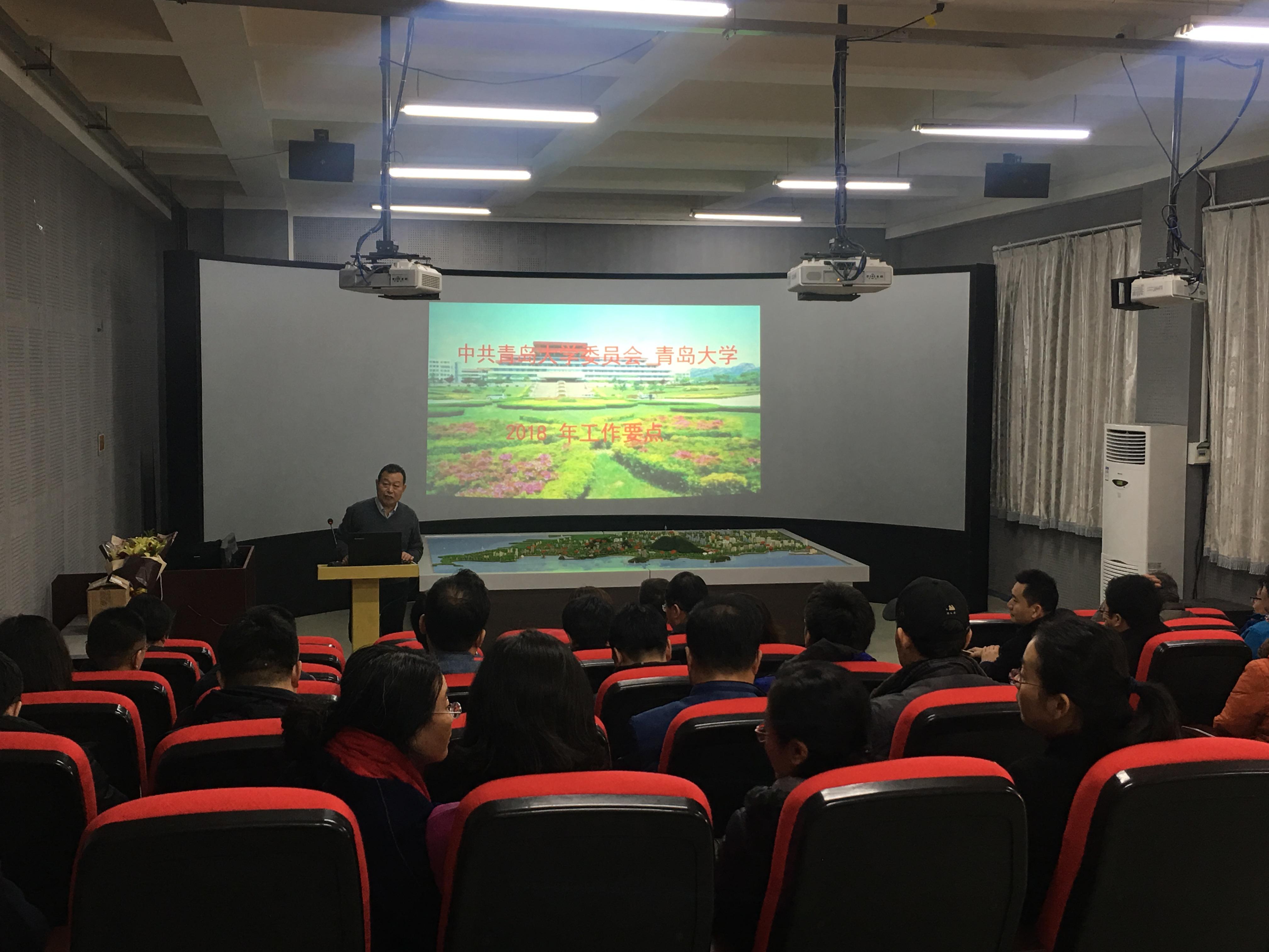 全体教职工会上,刘善东书记在传达学校党委全委扩大会议暨2018年工作研讨会会议精神和学校2018年工作要点的同时结合学院实际进行了动员。要求全体老师积极参与,迎接挑战,力争实现新的突破,为学院一流本科建设贡献智慧和力量。