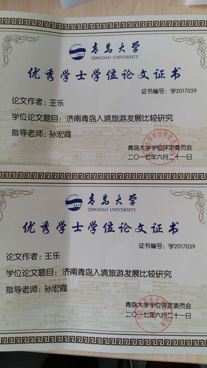 我院2013级地理专业学生王乐的毕业论文《济南青岛入境旅游发展比较研究》荣获SJB世俱杯官方网站优秀学士学位论文。