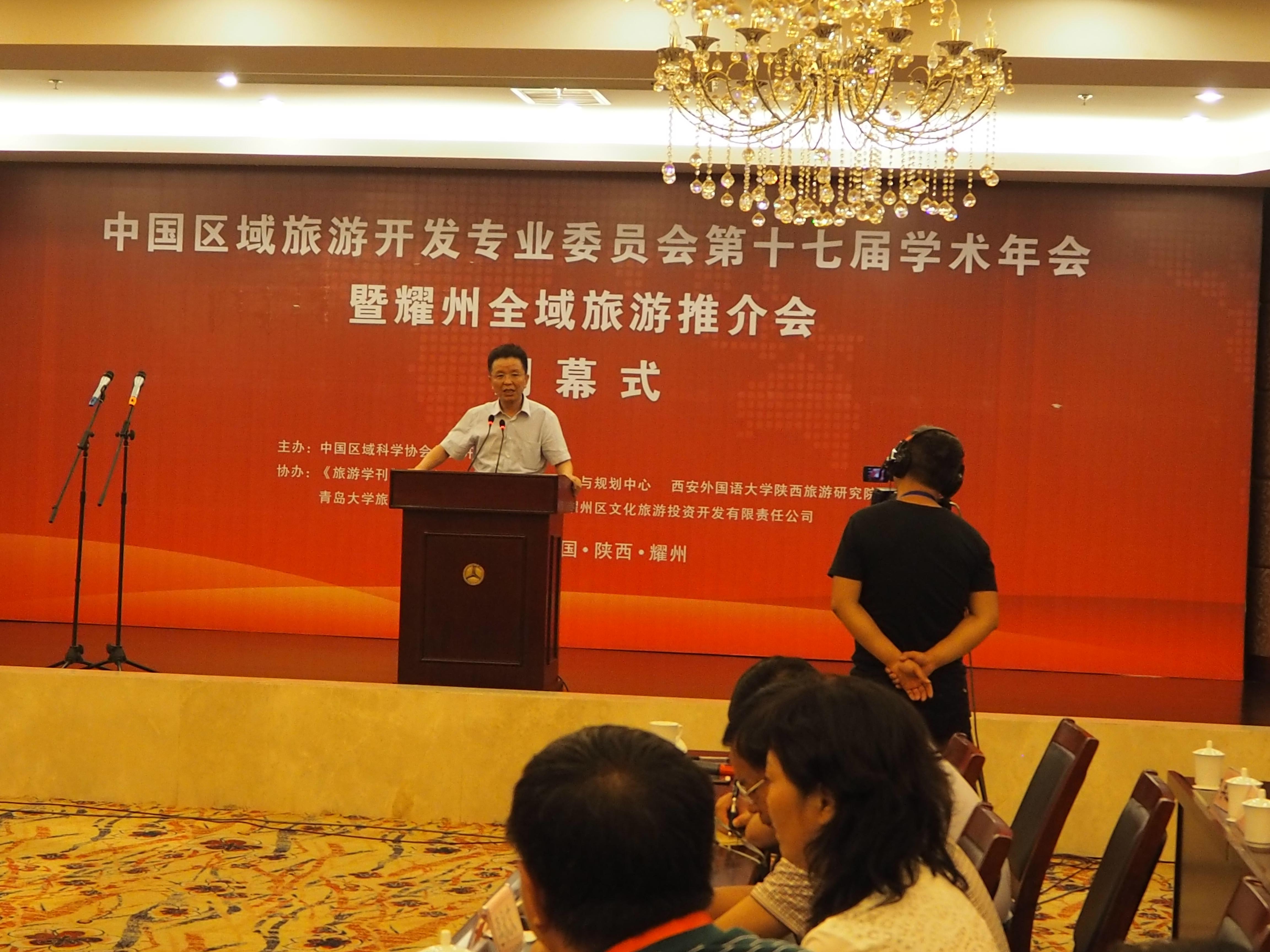 2016年7月25日—27日,中国区域旅游开发专业委员会第十七届学术年会暨耀州全域旅游推介会在陕西铜川市耀州区照金红色旅游小镇举办,会议由中国区域科学协会区域旅游开发专业委员会、铜川市耀州区人民政府主办,旅游学刊编辑部、北京大学旅游研究与规划中心、SJB世俱杯官方网站协办,耀州区文广新局(文物旅游局)承办。来自全国各地的35个单位56位专家学者围绕全域旅游:区域旅游开发创新与实践的主题,以主题发言、圆桌论坛等形式深入探讨和研究了“全域旅游”在区域旅游开发中的理论价值、应用策略与实践经验。我院作为中国区域科学协会区域旅游开发专业委员会的长期挂靠和主持单位协办此次会议,共有10名师生出席会议。