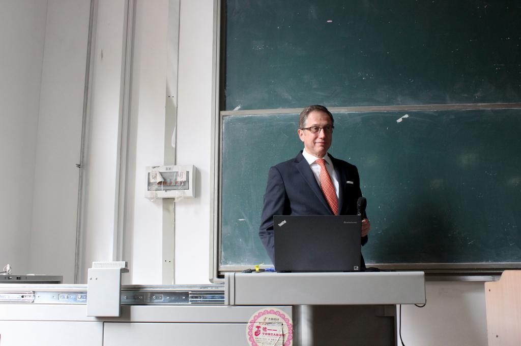 5月22日上午,旅游学院在中心校区东十二教举办了题为“奢华酒店员工的职业发展”的嘉宾讲座。此次活动由上海浦东丽思卡尔顿酒店总经理Rainer Burkle先生担任主讲嘉宾,万礼豪程项目经理董佳女士也参加了此次活动。讲座由旅游学院酒店管理系主任王平主持,13级酒店管理专业100多名同学到场聆听。