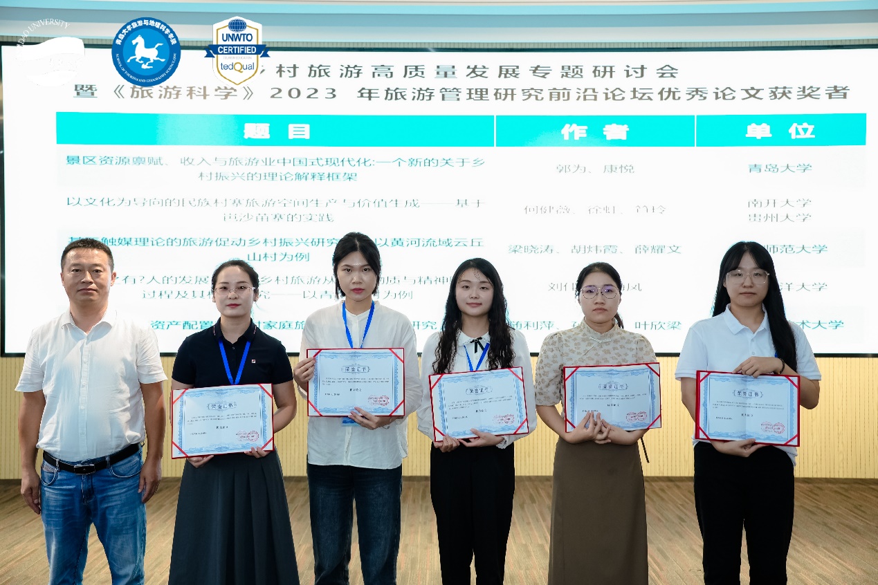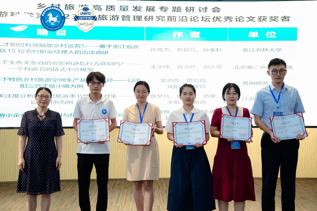 本次论坛收到了全国众多与会者的会议论文投稿。经第三方专家匿名评审,评选出10篇优秀会议论文。《旅游科学》期刊主编张宏梅教授和SJB世俱杯官方网站肖建红教授为获奖师生颁发了荣誉证书。闭幕式暨优秀论文颁奖环节由SJB世俱杯官方网站赵玉宗教授主持。