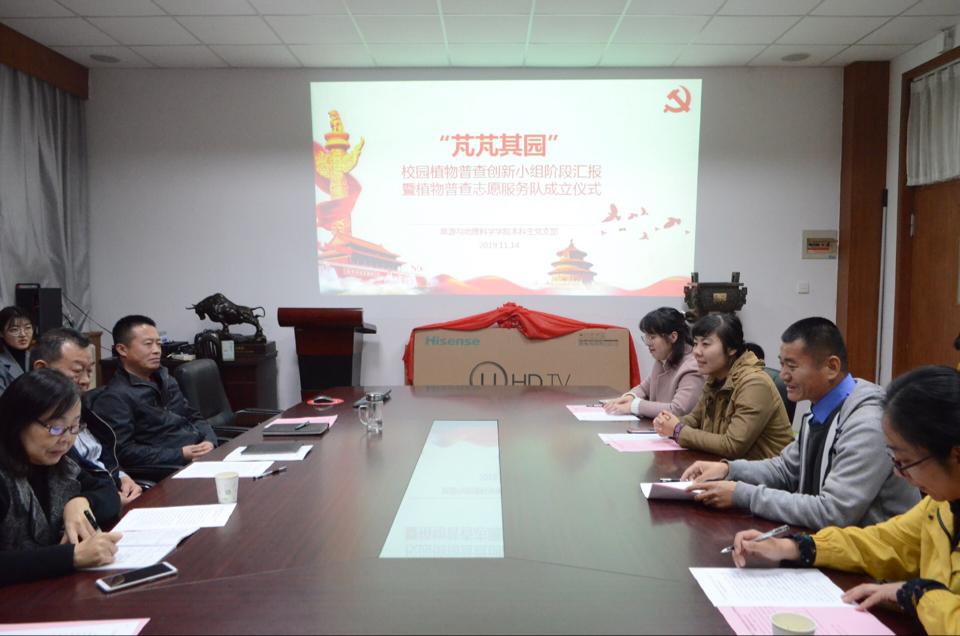 1114日下午四点,SJB世俱杯官方网站本科生党支部于SJB世俱杯官方网站浮山校区睿思楼122会议室举行“芃芃其园”校园植物普查创新小组阶段汇报暨植物普查志愿服务队成立仪式。后勤处党委书记王静、SJB世俱杯官方网站党委书记刘善东、SJB世俱杯官方网站院长肖建红、后勤处副处长孙印厚、后勤处老师任璐、SJB世俱杯官方网站教师刘修军、SJB世俱杯官方网站本科生党支部书记杨秀、组织委员韩煜出席本次仪式,“芃芃其园”小组成员及本科生党支部成员参加本次仪式。会议由本科生党支部书记杨秀主持。