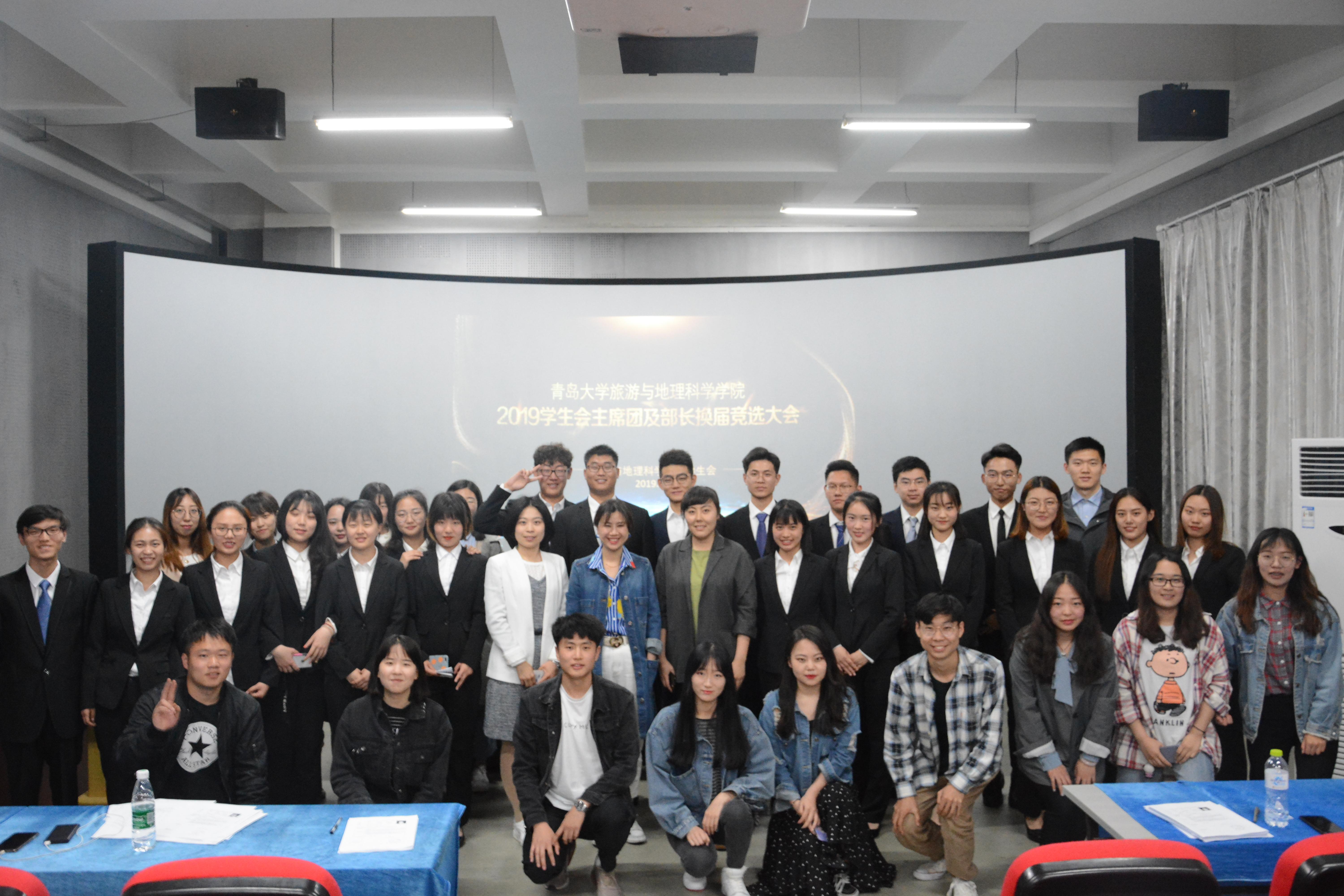 5月6日,SJB世俱杯官方网站2019学生会主席团及部长换届竞选于SJB世俱杯官方网站浮山校区数字旅游实验室举行,学院党委副书记于苗及辅导员老师出席本次竞选活动。