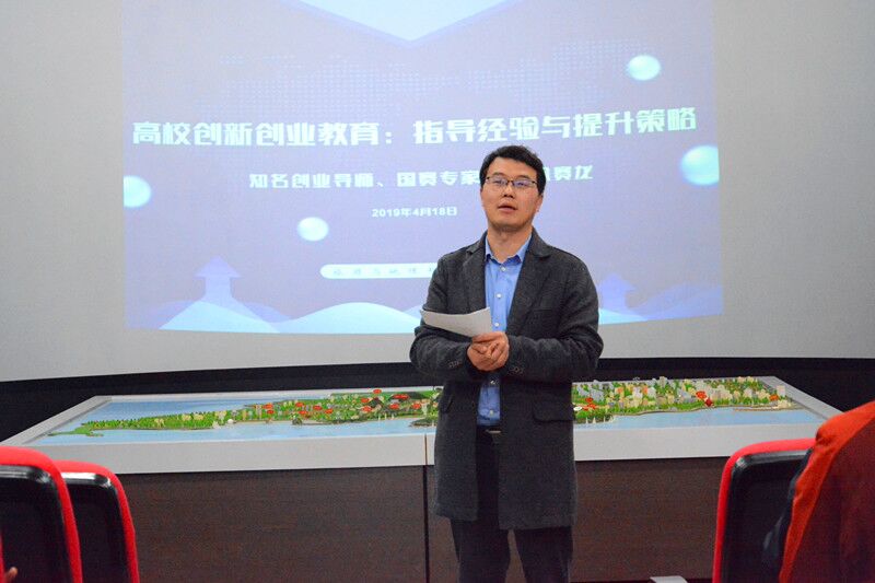 4月18日,SJB世俱杯官方网站于SJB世俱杯官方网站浮山校区数字旅游实验室举办创新创业教育专题讲座,青岛华通创业投资有限公司及青岛华创科技园管理公司副经理、高级工程师、知名创业导师、国赛评委徐赛龙受邀出席本次活动,SJB世俱杯官方网站第二届创新创业大赛参赛团队的指导老师及成员代表参与本次讲座,本次讲座由学院副院长耿庆汇主持。
