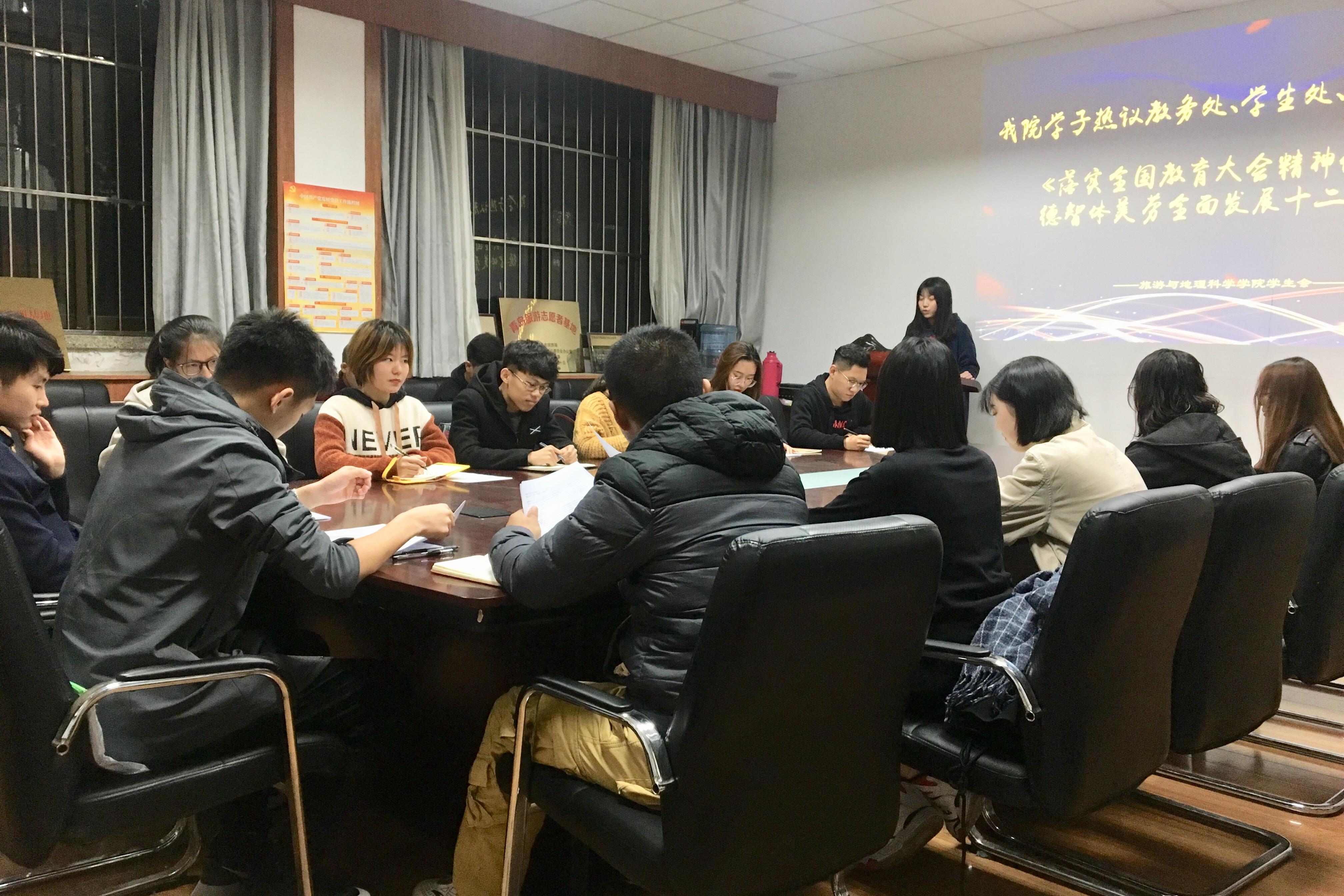 首先,2016级潘佳岩同学宣读了《落实全国大会精神促进学生德智体美劳全面发展十二条措施》,从开展主题教育活动、强化学风班风建设等12个方面介绍了落实推进具体工作的措施,全体与会人员对此展开热烈的讨论。随后,各年级学生代表分别就树立正确的价值观,全面发展。加强个人修养与自我成长,提高创造力,脚踏实地等方面分享了对《落实全国大会精神促进学生德智体美劳全面发展十二条措施》的感悟。紧接着,学生会各部门回顾过去关于促进德智体美劳全面发展中活动的开展情况。最后,学生会主席2016级王昱凯同学宣读了《SJB世俱杯官方网站学生会关于促进德智体美劳全面发展的七条措施》,旨在通过主题教育活动,强化学习,增强学生创新呢能力,促进全面活动的开展,切实促进学生的全面发展。