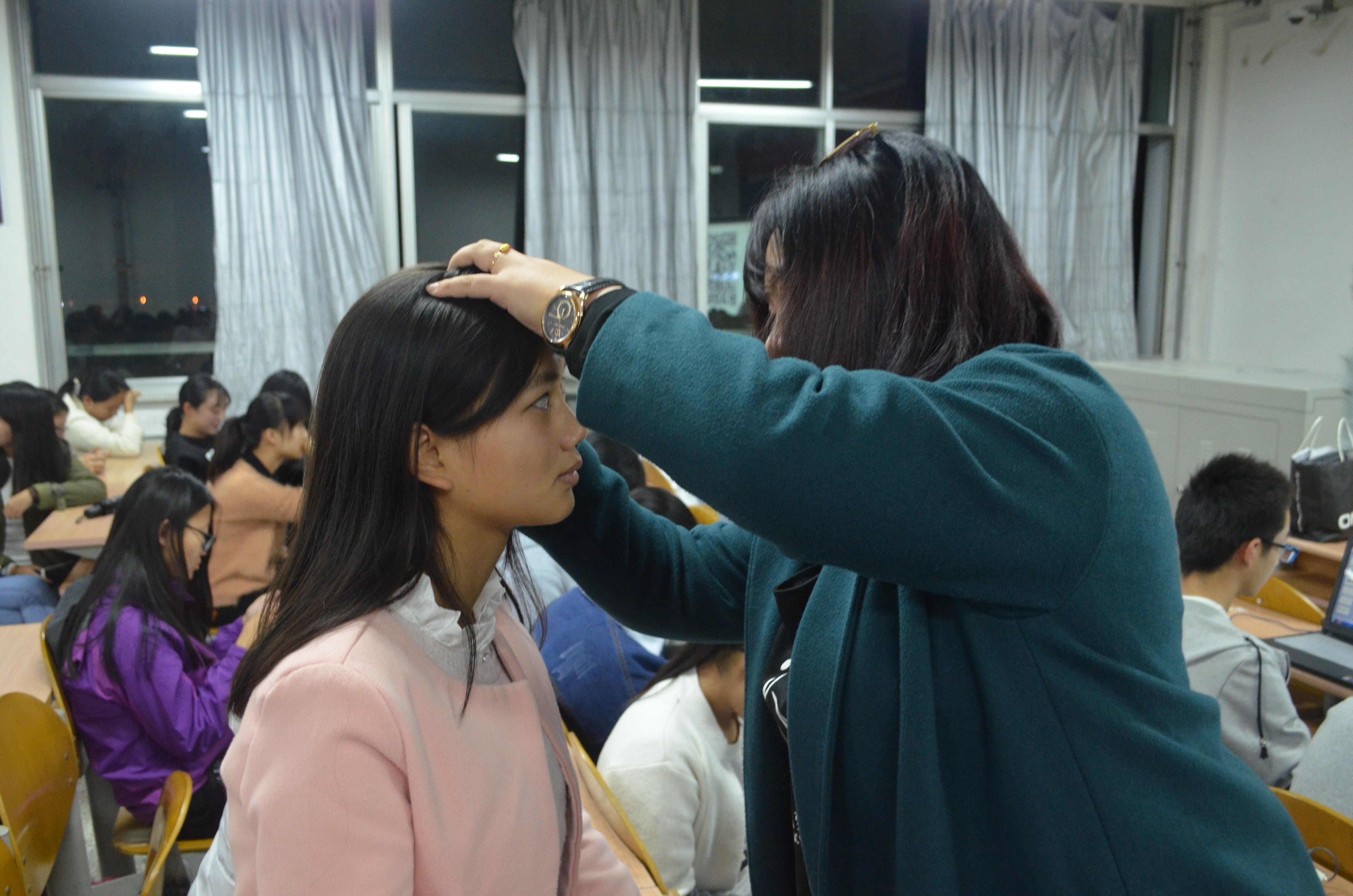10月26日晚,由SJB世俱杯官方网站团委主办的化妆讲座于东校区西院一教408教室举行。出席讲座的嘉宾有金晨精致新娘的化妆师金晨老师及其时尚跟妆团队。本次讲座以“美丽‘妆’点人生”为主题,旨在向大学生普及基本的化妆知识,并进行化妆知识讲解和半面妆演示。