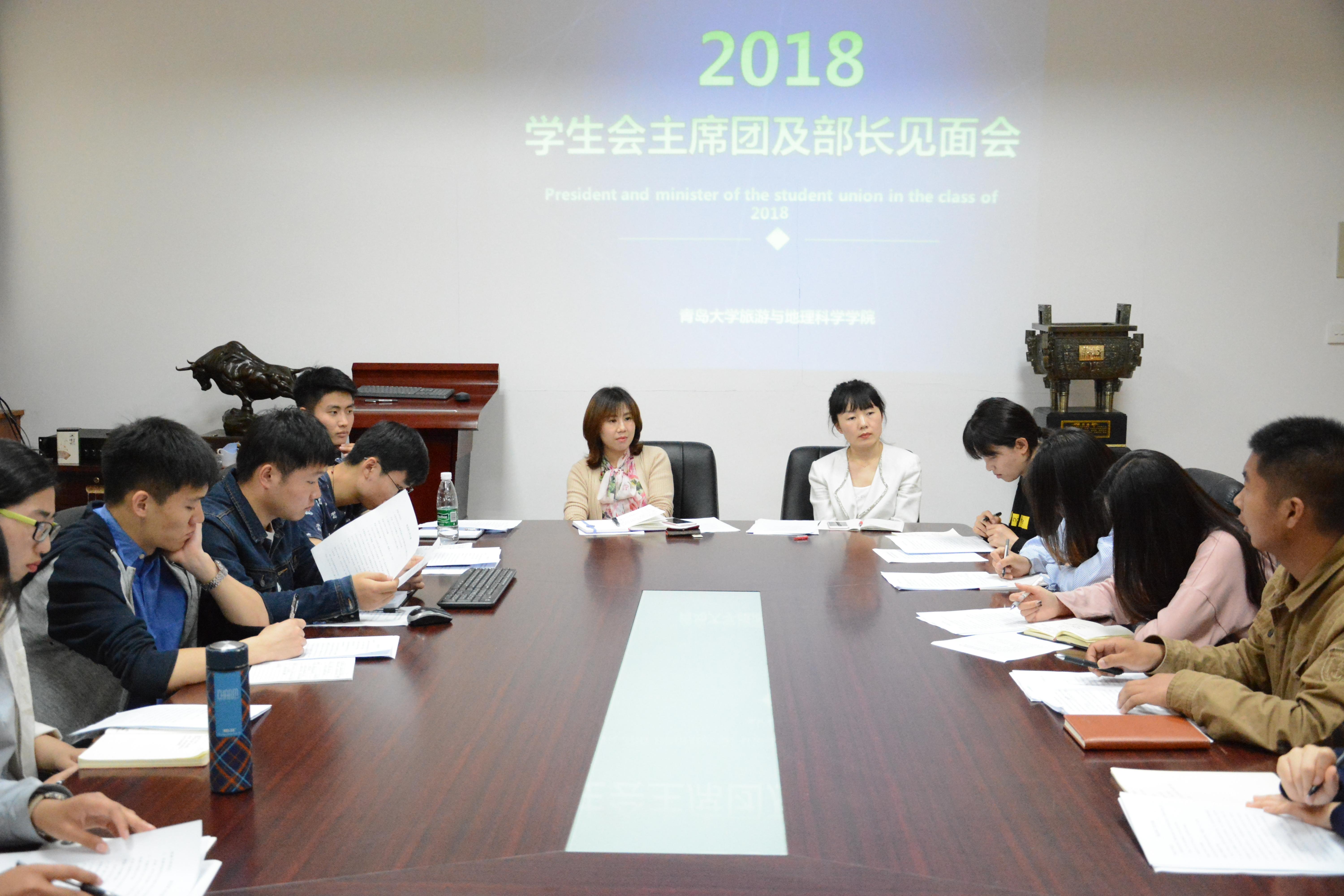 5月23日,SJB世俱杯官方网站新一届学生会主席团及部长见面会于SJB世俱杯官方网站浮山校区睿思楼122室举行。院党委副书记于苗、团委书记韦辉、新一届学生会主席团及部长参加了本次见面会。