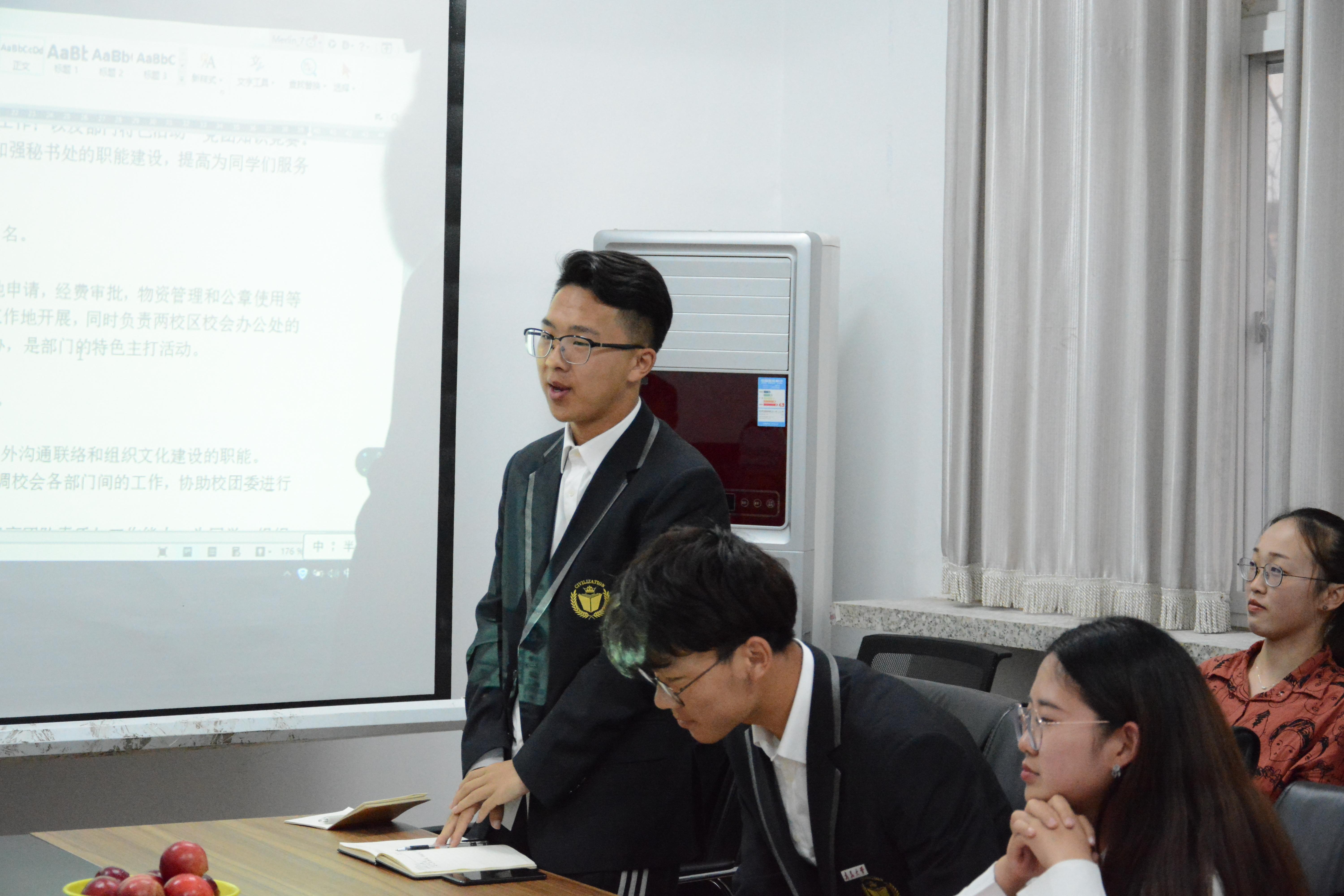 会议伊始,双方人员分别进行了自我介绍,首先,SJB世俱杯官方网站学生会主席张彦对SJB世俱杯官方网站学生会一行来访表示欢迎,对校学生会开展各项工作的经验做了细致的分享,就学生会工作的制度建设,工作考核等方面作出了详细介绍。随后,SJB世俱杯官方网站学生会主席王昱凯表示,将继续传承创新,不断向校学生会等优秀的学生组织学习,全心全意为同学们服务。最后在提问环节,我院学生会干部就学生会成员的档案建立与管理、学生权益工作的开展、部门制度的建立与部门分工、微信推送质量的提高等方面向相关负责人作出了提问,相关负责人就自身情况作出详细的回答。