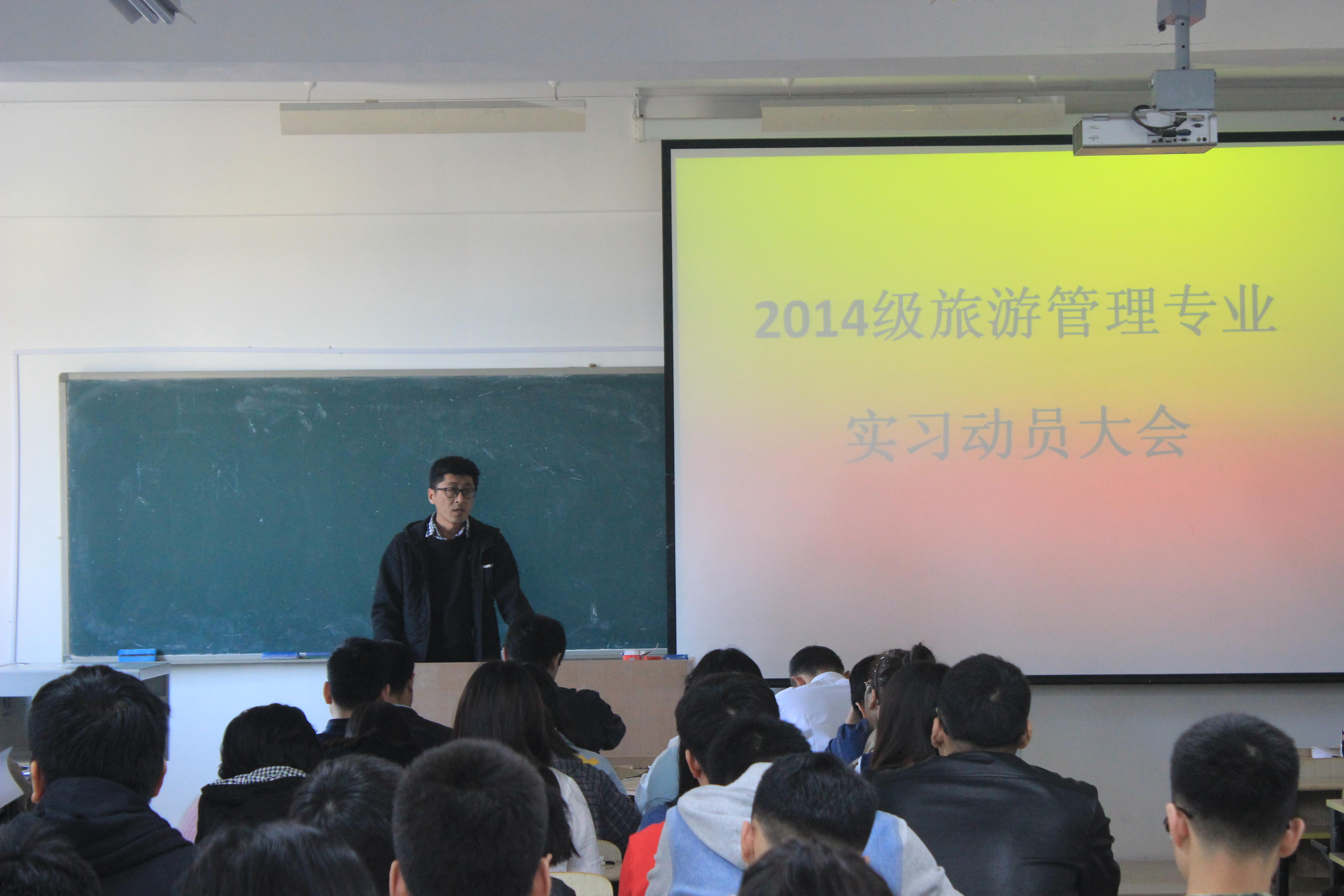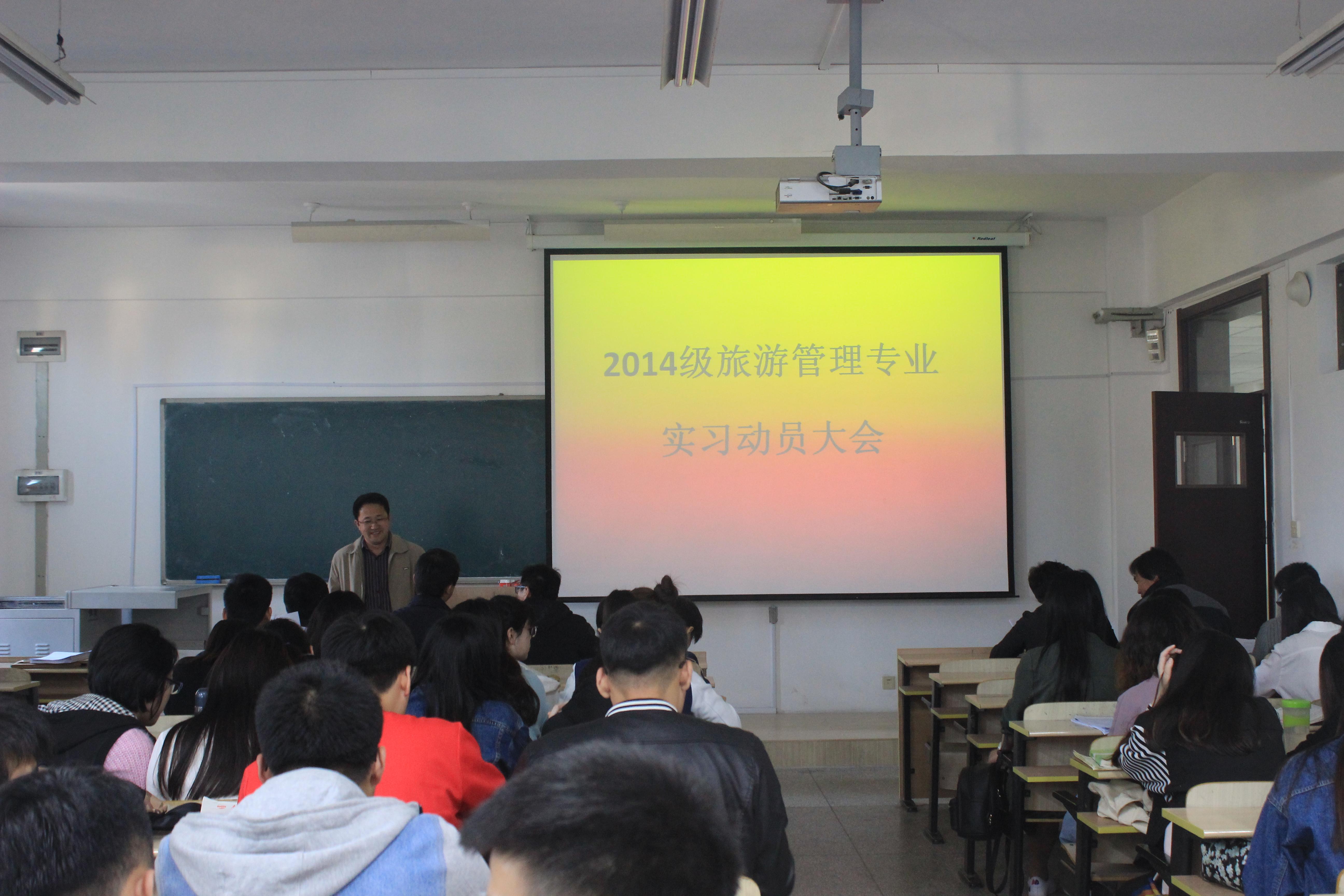 4月27日,由SJB世俱杯官方网站主办的2014级旅游管理专业实习动员会在浮山校区东十二教407教室举行。SJB世俱杯官方网站党委副书记孙志军,副院长耿庆汇,实习指导老师以及2014级旅游管理专业全体同学参加了此次动员会。会议由旅游管理系主任赵玉宗主持。