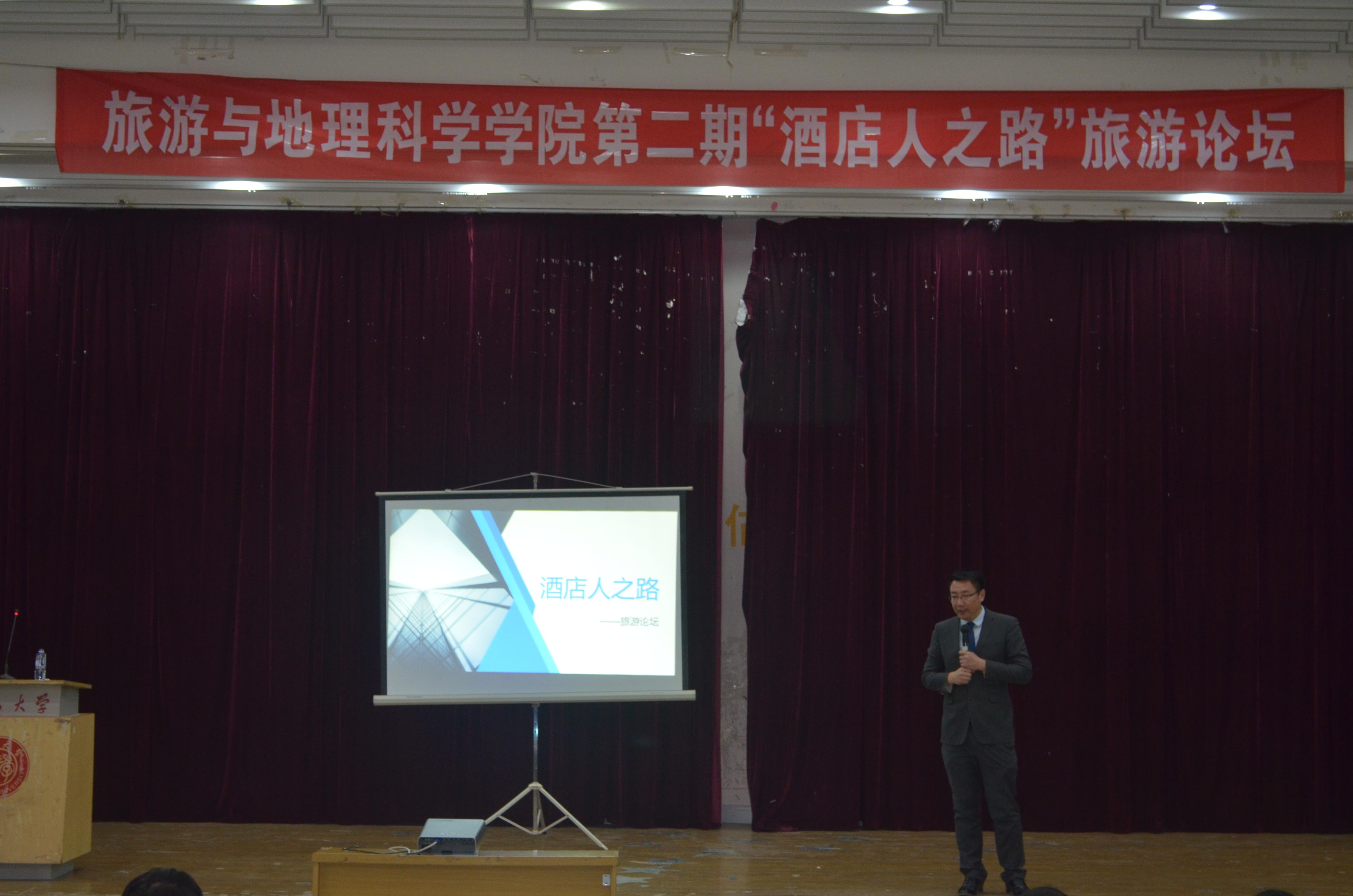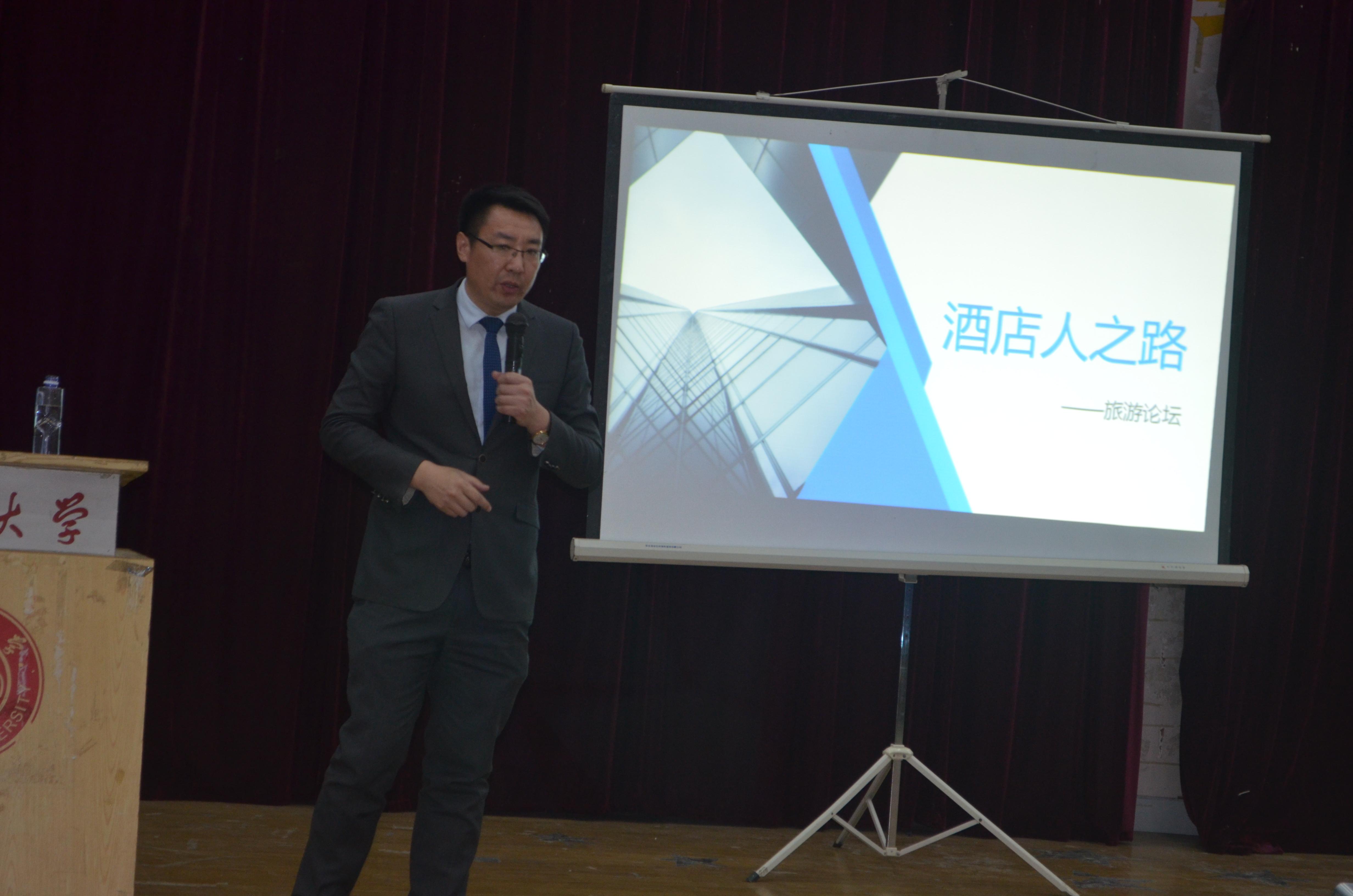 3月31日,由SJB世俱杯官方网站主办的“酒店人之路”第二期旅游论坛在SJB世俱杯官方网站东校区图文中心四楼报告厅举行。本次旅游论坛主讲嘉宾为SJB世俱杯官方网站九八级旅游管理专业优秀校友、青岛海景花苑大酒店总经理孙兆刚先生。SJB世俱杯官方网站2016级酒店管理专业的全体同学参加了此次论坛。论坛由学工办主任葛晓茜主持。