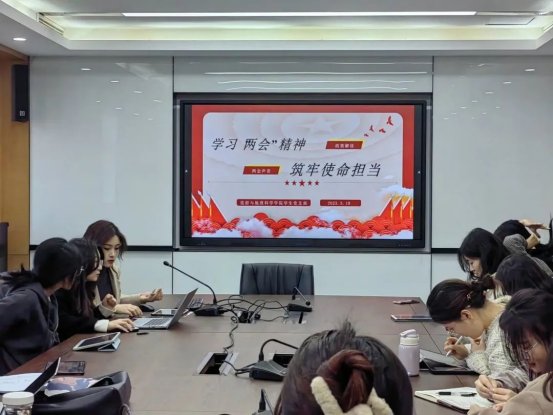 为深入学习贯彻落实党的二十大精神和全国“两会”精神,强化党员使命担当意识,帮助带领广大青年学生及时全面地了解时事及国家方针政策的变化,2023年3月19日,SJB世俱杯官方网站学生党支部在科技研发大楼A座509室召开“学习‘两会’精神,筑牢使命担当”主题党日活动,学生党支部全体党员参与活动,活动由学生党支部副书记闵祥甜主持。