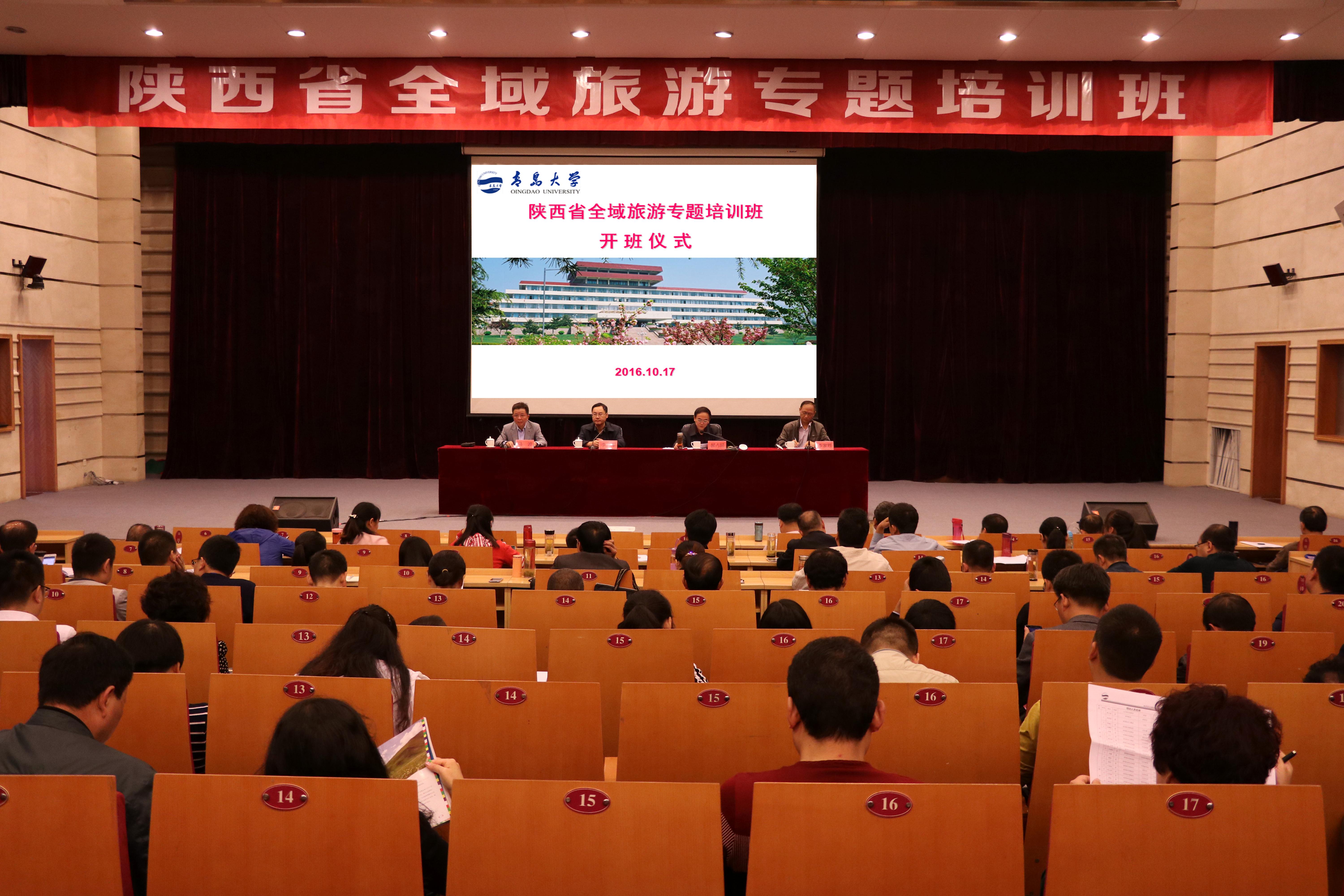 10月17日,由陕西省旅游局、西安市旅游局主办、SJB世俱杯官方网站承办的“陕西省全域旅游专题培训班”在我校国际学术交流中心博学厅召开。我校李军副校长、陕西省旅游局副局长郝占廷、SJB世俱杯官方网站马波院长、陕西省旅游局人教处处长李家胜等出席开班仪式。来自陕西省旅游局、西安市旅游局的领导干部以及重点旅游企业负责人共计130余人参加此次培训。此次全域旅游专题培训班是陕西省旅游深入实施“百千万”旅游培训工程的培训内容之一。
