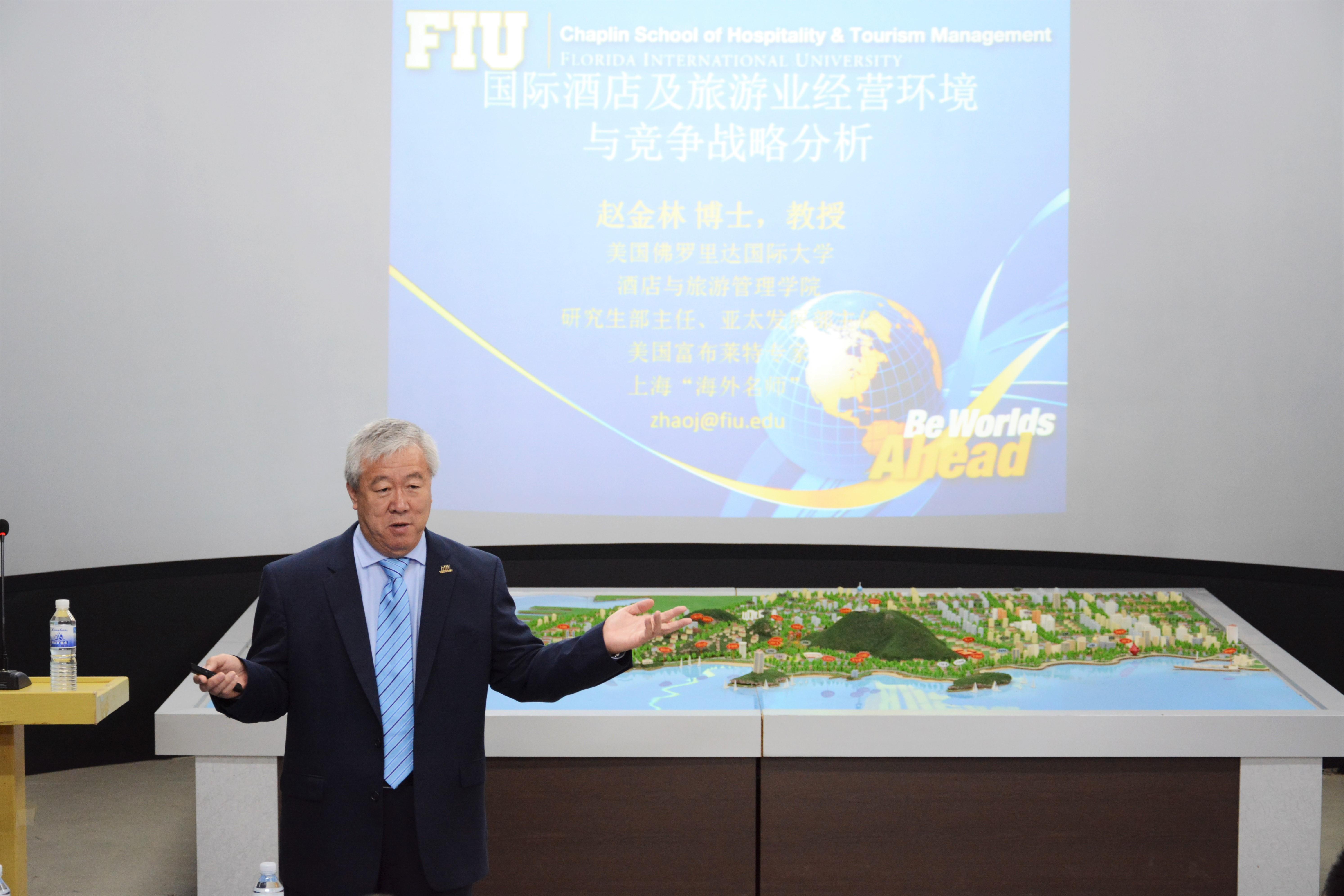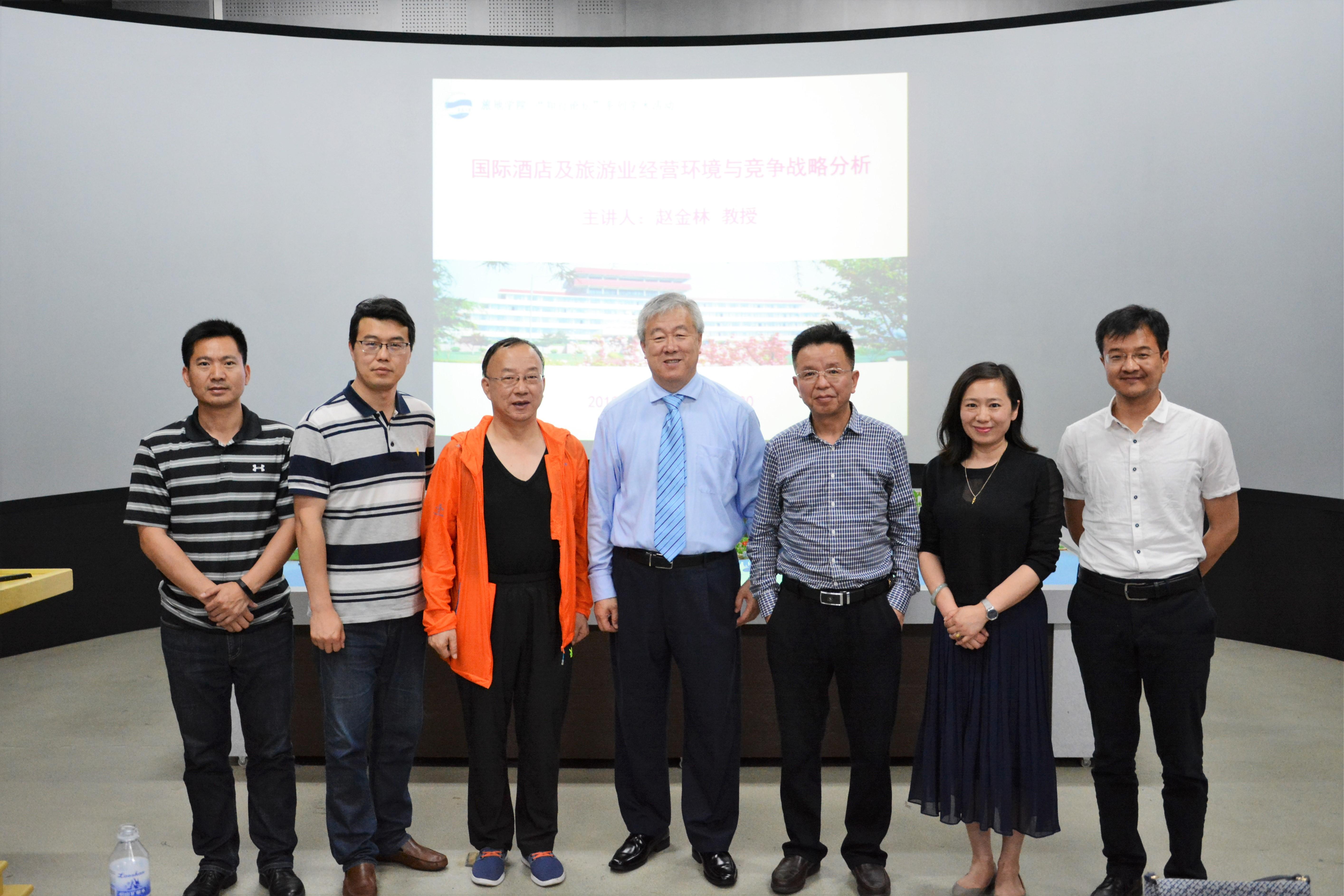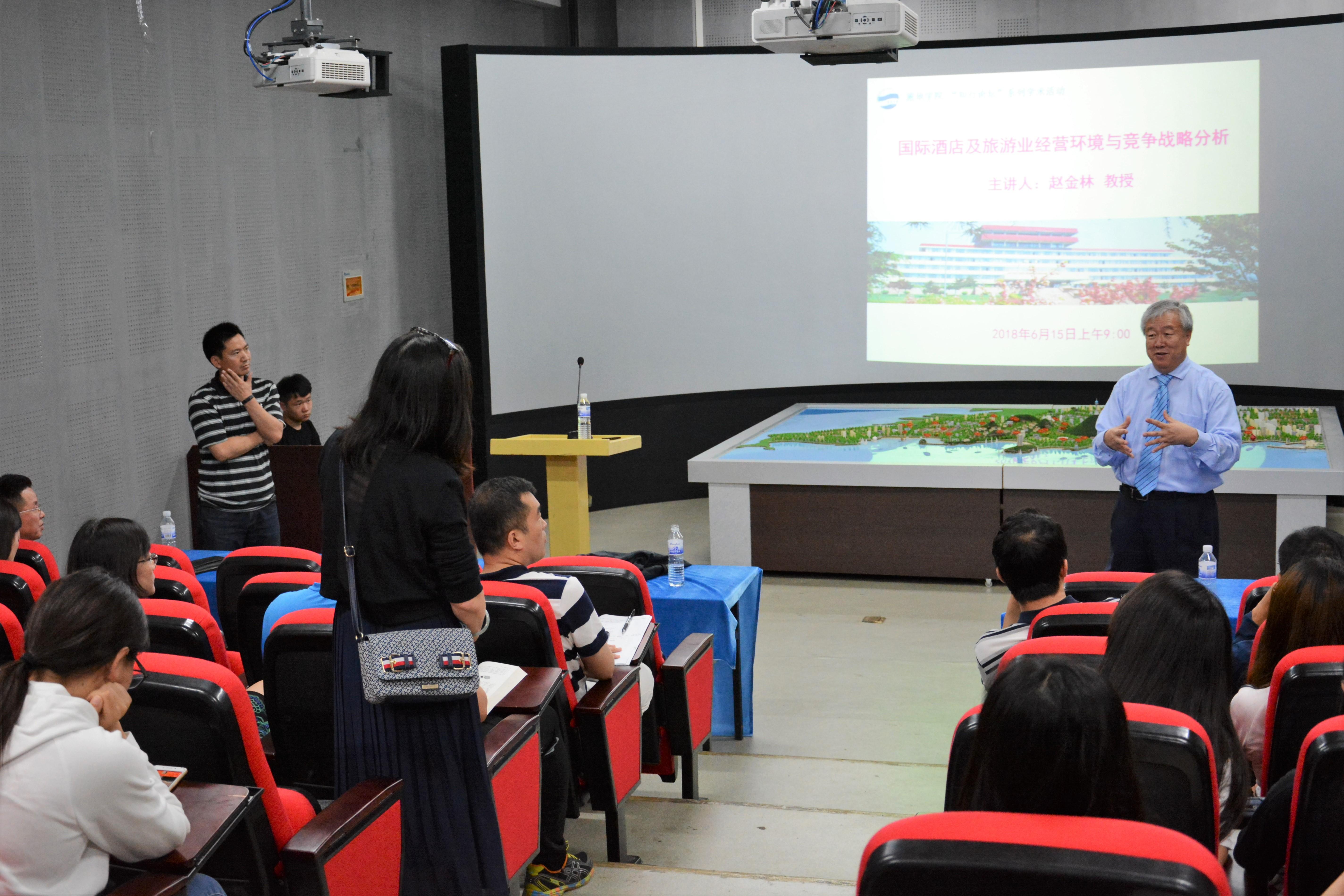 2018年6月15日上午9点,SJB世俱杯官方网站于SJB世俱杯官方网站浮山校区静思楼2号旅游数字实验室举办“国际酒店及旅游业经营环境与竞争战略分析”学术交流会。本次交流会特邀美国佛罗里达州国际大学赵金林教授做学术报告,我院副院长张言庆主持本次交流会。