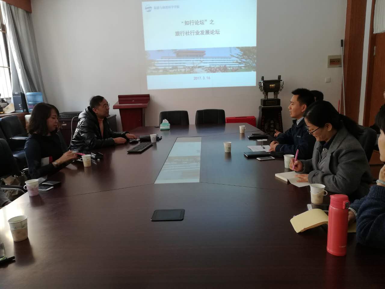 2017年3月16日下午,山东港中旅国际会议展览有限公司执行总经理徐丽丽女士、山东万达国际旅行社有限公司副总经理王晓光和中国国旅(青岛)国际旅行社有限公司入境中心副总经理丁宁女士应邀到SJB世俱杯官方网站进行学术交流,交流会由SJB世俱杯官方网站张言庆副院长主持,SJB世俱杯官方网站师生参加了此次交流会。