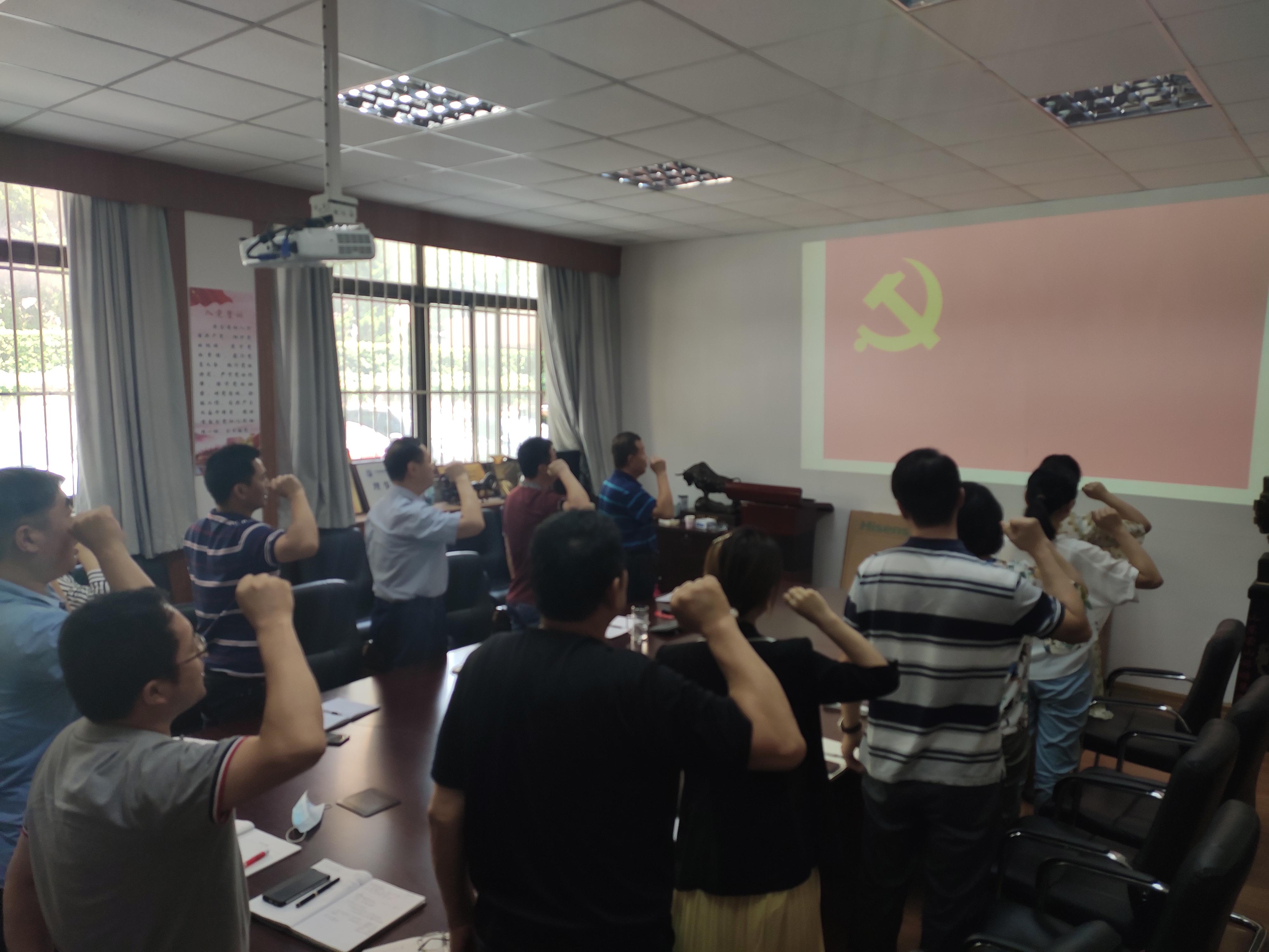 集体学习后,大家庄重地举起右拳,面对鲜红的党旗,举行了重温入党誓词仪式。