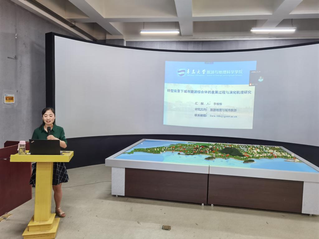 李维维博士以“转型背景下城市旅游综合体的发展过程与演化机理研究”为题,从选题依据、研究意义、理论基础与文献综述、研究思路与方案、研究结论与讨论等方面,以西安、杭州两个城市尺度及西安曲江、杭州西溪湿地、休博会三个不同类型城市旅游综合体为案例,围绕城市旅游综合体的概念、分类、影响要素与演化机理等内容进行了系统全面的介绍。