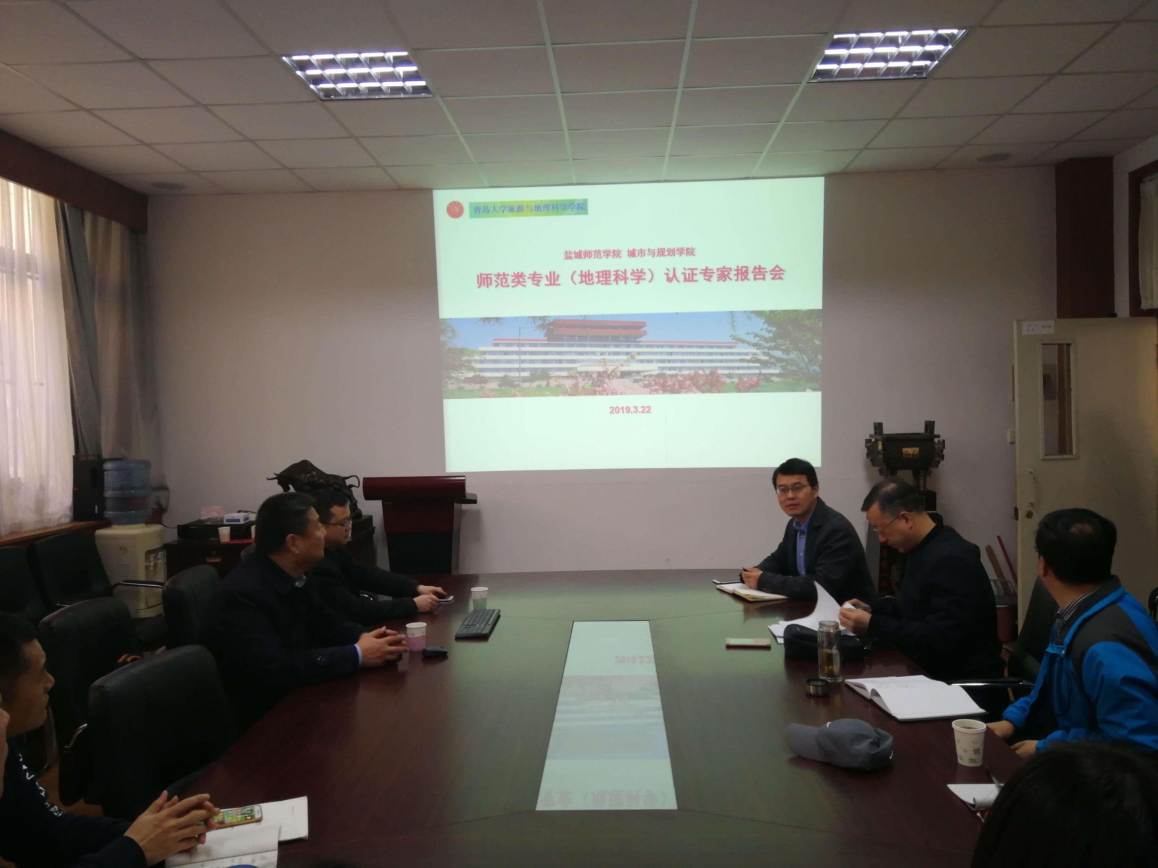 2019年3月20日,SJB世俱杯官方网站邀请盐城师范学院城市与规划学院陈洪全院长与王亮副院长,到学院进行了专业认证辅导与交流,SJB世俱杯官方网站耿庆汇副院长主持会议,地理与城乡规划系全体教师参加会议,学校其他学院相关领导、骨干教师也前来参加此次辅导交流活动。陈洪全院长结合本院师范专业认证过程,从专业发展历史与现状、专业建设主要举措、专业建设主要成就、专业建设存在问题以及展示交流等方面,进行了汇报交流。汇报结束后,地理与城乡规划系教师,围绕专业认证,从实验室建设、教师技能训练、教育实习与实习基地建设等方面,与两位专家进行了面对面交流,受益匪浅。这次交流活动是对地理系全体教师的一次动员大会,通过交流大家对师范专业认证有了更加清晰的认识,同时也认识到自己的差距,为后续具体专业认证工作指明了方向。