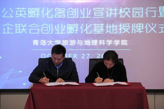 2017年10月27日下午,SJB世俱杯官方网站蒲公英孵化器创业宣讲校园行暨校企联合创业孵化基地授牌仪式于SJB世俱杯官方网站浮山校区图书馆报告厅举行。蒲公英(青岛)孵化器总经理杨荣辉,蒲公英(青岛)孵化器创业导师、华纳时代(北京)资本管理有限公司合伙人、创投基金总经理兼山东分公司总经理姜克,蒲公英(青岛)孵化器创业导师、橙子TC创始人、青岛真橙网络科技有限公司总经理王钦文,SJB世俱杯官方网站副院长张言庆出席了本次授牌仪式。SJB世俱杯官方网站部分同学参加了本次活动。