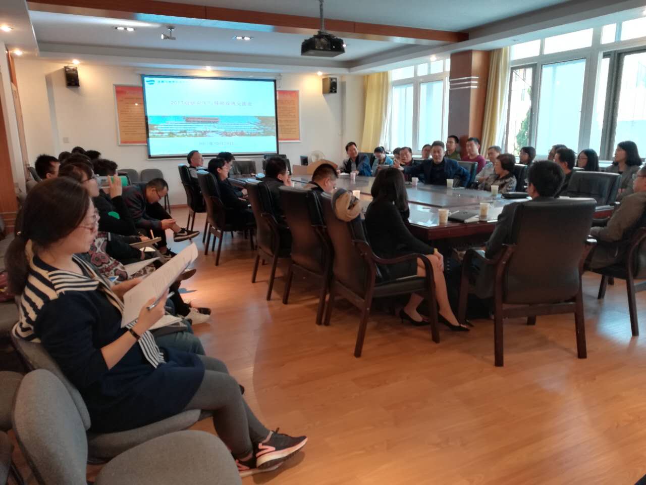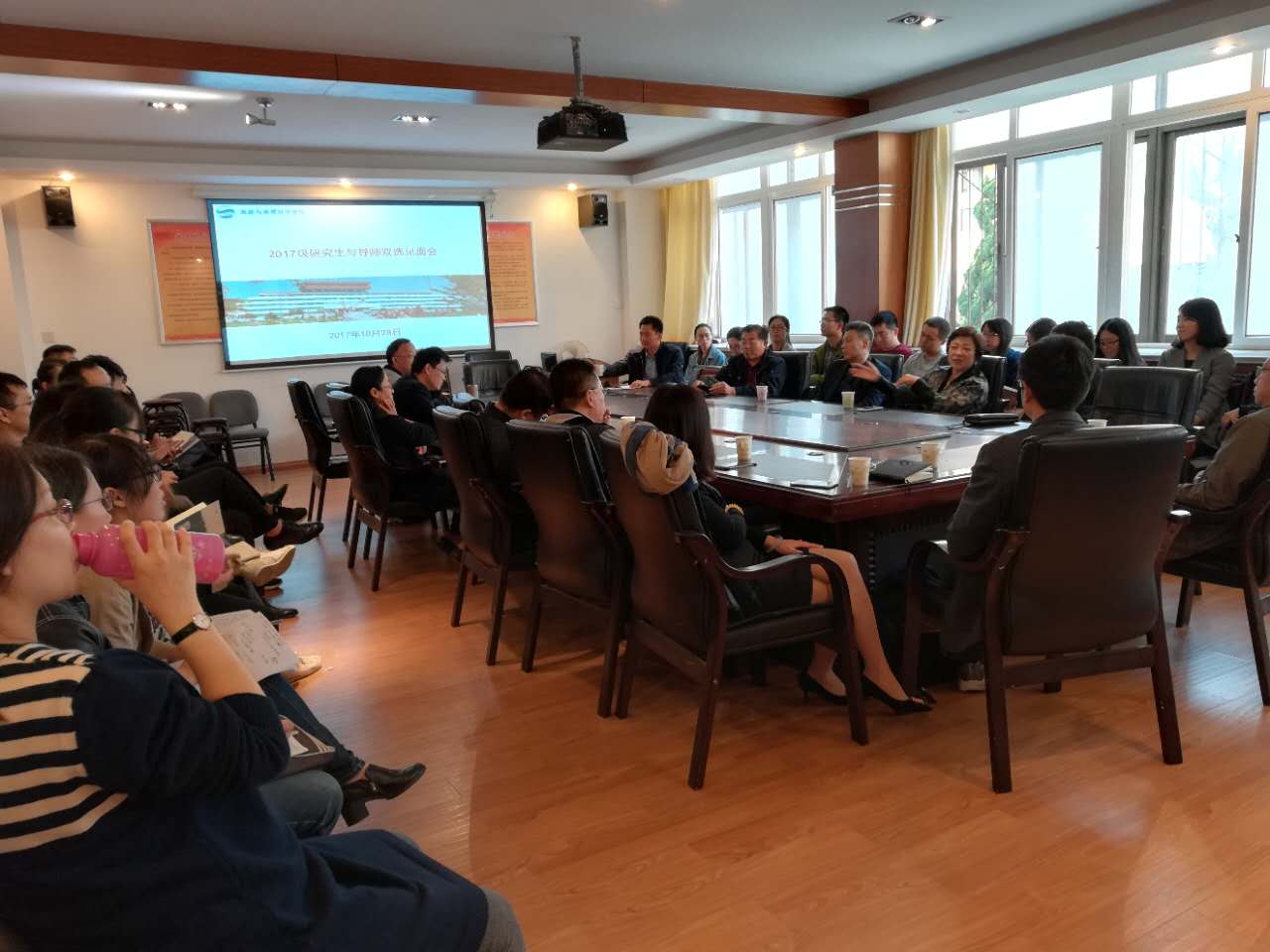 2017年10月28日下午2点,我院研究生导师双选会暨见面会在睿思楼220会议室顺利召开。出席本次会议的有马波教授、耿庆汇副教授、张言庆副教授、王平副教授、高德宗副教授、田克勤副教授、唐顺英副教授、于岩平副教授、钟行明讲师、潘永涛讲师、山东老转村美食娱乐有限公司牛虎兵总经理、港中旅国际(山东)旅行社有限公司田平总经理及青岛市旅游局江秀凯副局长等研究生导师以及2017级硕士研究生,见面会由学院研究生分管领导张言庆副院长主持。